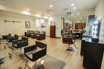 The modern and chic environment is influenced by Hollywood glam with black and white with pops of red and cherry wood and images of iconic beauty stars. They provided the full gamut of services from hair cuts, color, treatments, and extensions.